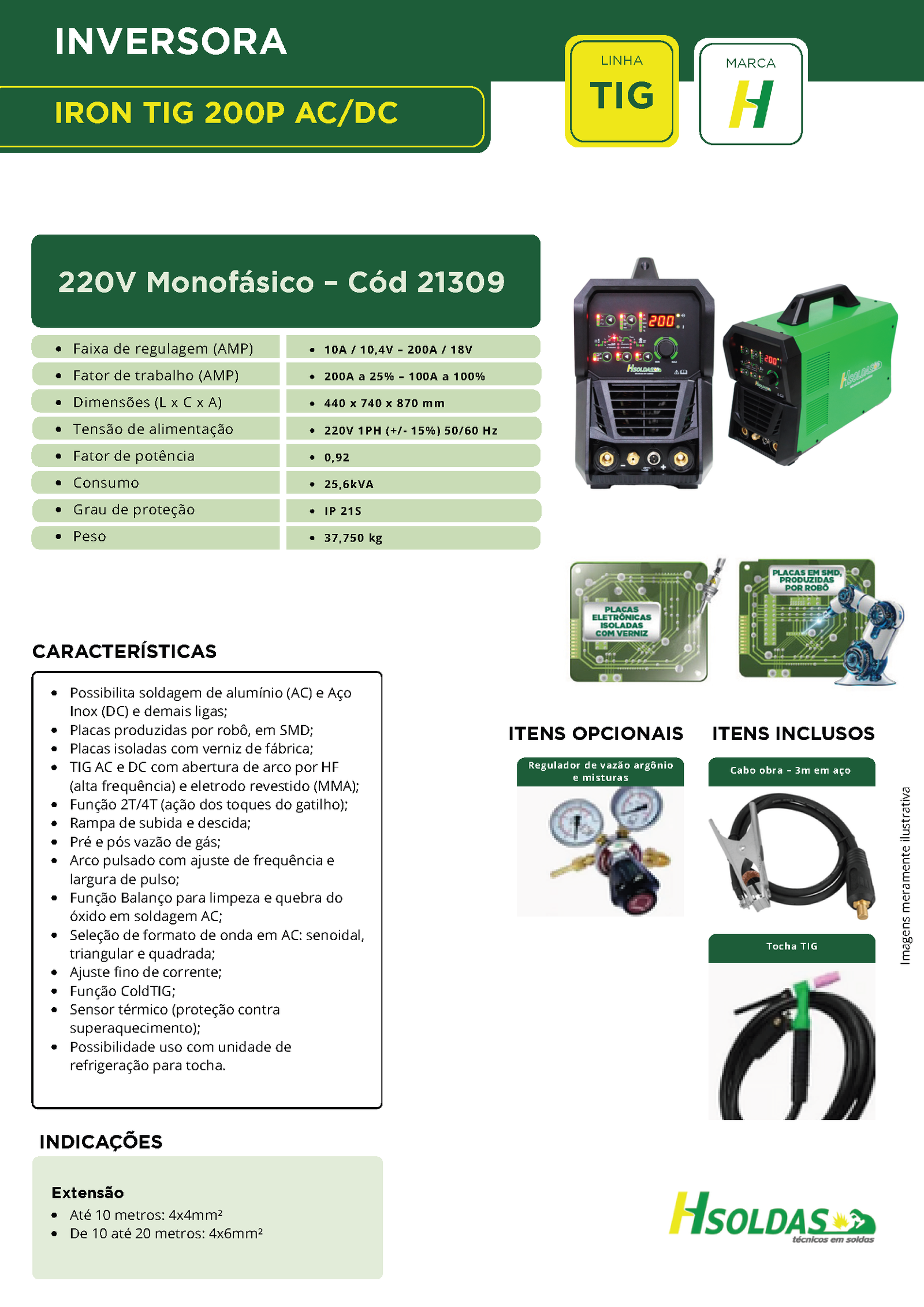 • Possibilita soldagem de alumínio (AC) e Aço Inox (DC) e demais ligas